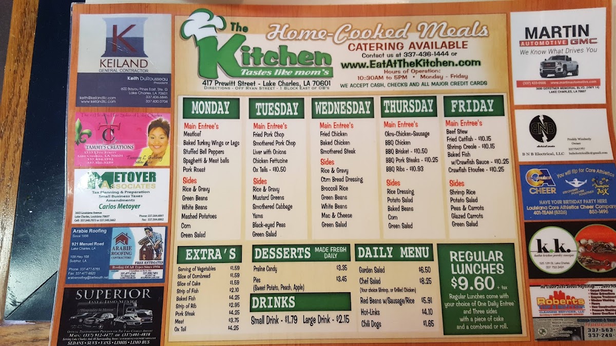 If you’re flipping through The Kitchen Menu at 417 Prewitt St, Lake Charles, you can tell right away it’s built for people who love real, satisfying food. The options feel thoughtful without being fussy, mixing comfort favorites with dishes that carry a little Southern flair. One minute you’re eyeing something rich and savory, the next you’re tempted by a lighter plate that still promises big flavor.
